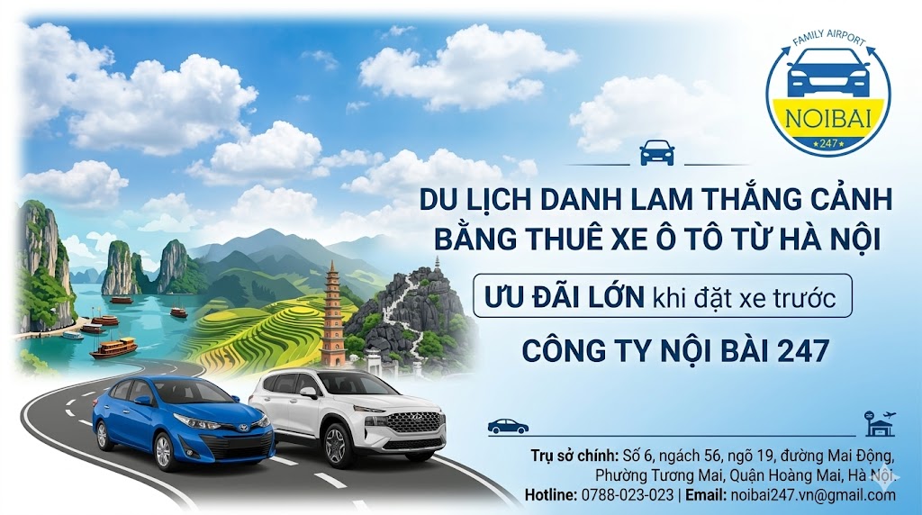 Dịch vụ cho thuê xe từ Hà Nội ngày càng chuyên nghiệp, với các công ty như Nội Bài 247 cung cấp lựa chọn đa dạng. Trụ sở chính tại Số 6, ngách 56, ngõ 19, đường Mai Động, Phường Tương Mai, họ có hotline 0788-023-023 và email noibai247.vn@gmail.com để hỗ trợ.